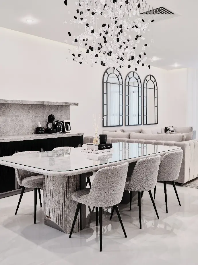 Blending family practicality with refined details, offering ample space for daily essentials. Polished edges and a design that harmonizes with the flooring ensure both easy cleaning and seamless integration.