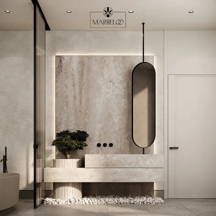 Crafted to welcome distinguished guests, using durable marble and precise finishes that ensure long-lasting cleanliness. Available in single or double basin options, complemented by mirrors and concealed lighting that enhance the atmosphere of luxury.